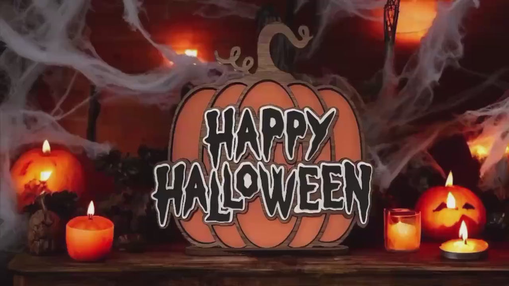 Happy Halloween Layered Wood Sign | 3D Pumpkin Sign | Laser Cut Halloween Decor | Spooky Fall Shelf Sitter | Haunted House Decoration